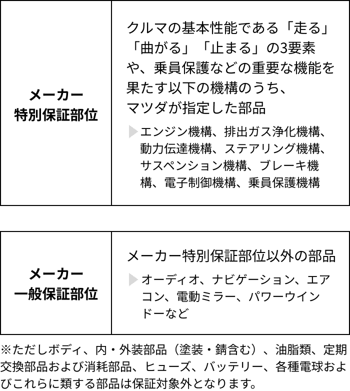 • マツダ延長保証〈7年プラン〉【対象部位】