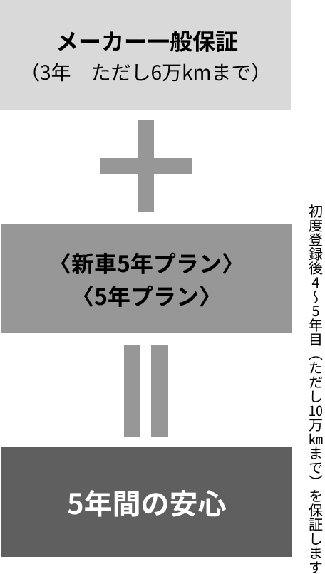 • *〈新車5年プラン〉は、初度登録日から3ヶ月(ただし2万km)以内にご加入いただけるプランです。