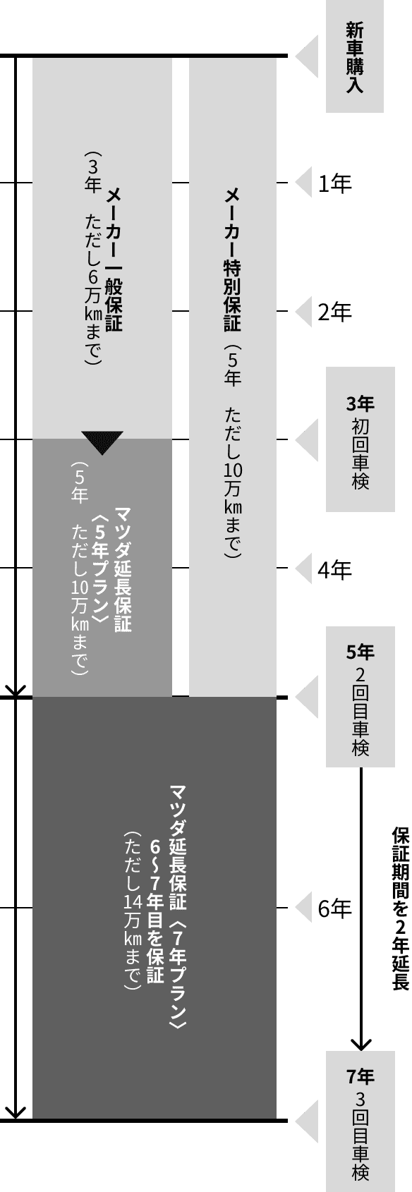 でもマツダ延長保証〈7年プラン〉なら、保証期間を7年目(ただし14万km)までさらに延長。